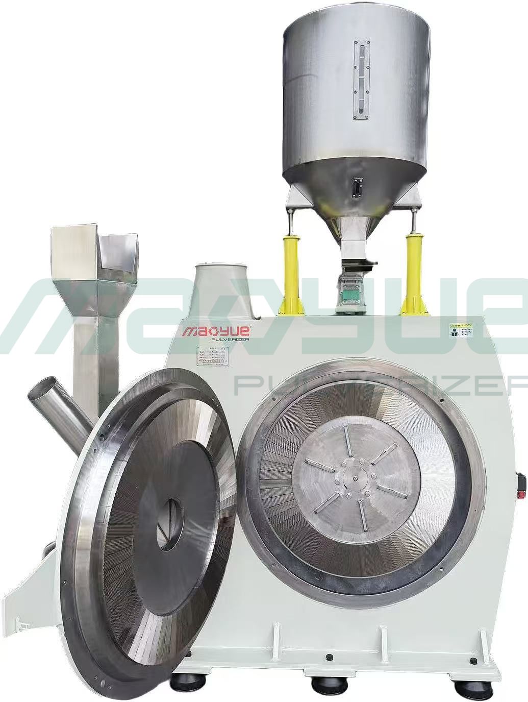 The disc gap can be precisely adjusted to control powder fineness and grinding efficiency.