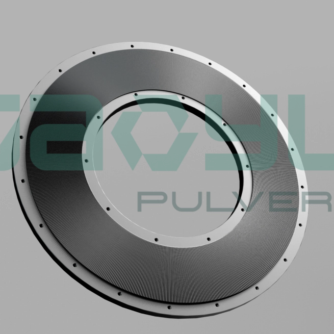The diameter of the PE PP grinding discs ranges from 400-800 mm, PE grinding discs made of D2 material, hardness (HRC) 60-61, and the material to be crushed is introduced through the center of a vertically fixed disc,